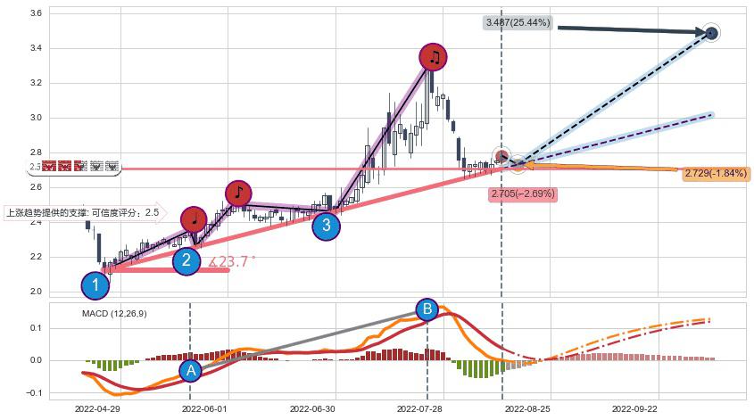 ➢ 预测:2022-08-17,【小幅回撤】稳定目前上涨趋势的前提下,预测价格:2.729