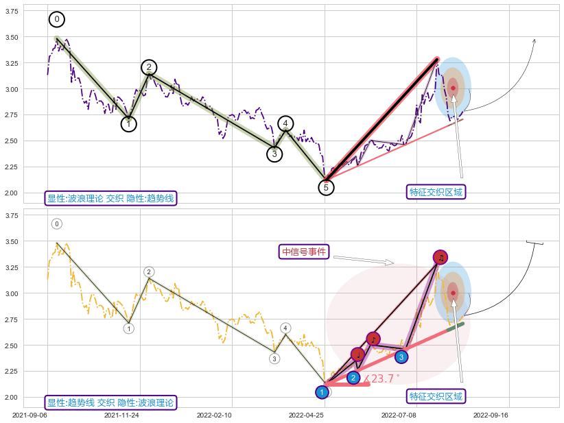 ➢ 循环浪继续向上【最低】位置(2023-01-23, 3.264),匹配聚类样本比例29.30%, 可能性概率11.95%