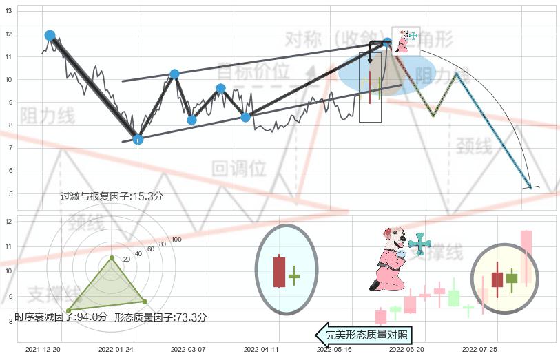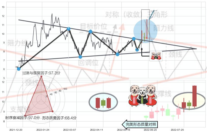 ➢ 🕰 价格走势在2022-07-25至2022-08-08期间形成两红夹一黑,残存影响值:5.51