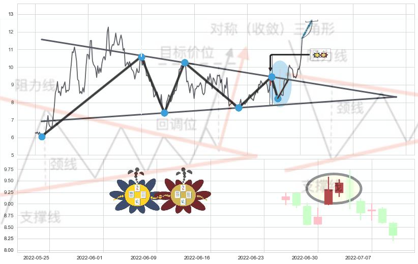 ➢ 【买1】: 激进型 买点 →(2022-07-26: 9.29 )形成突破上升【对称】三角形整理【整理】形态