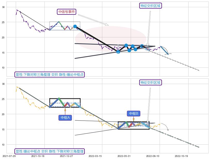 ➢ 下降对称三角整理属【中级别信号事件】缠论中枢点属【长级别信号事件】中长周期组合信号事件,中长事件长度比50.20%