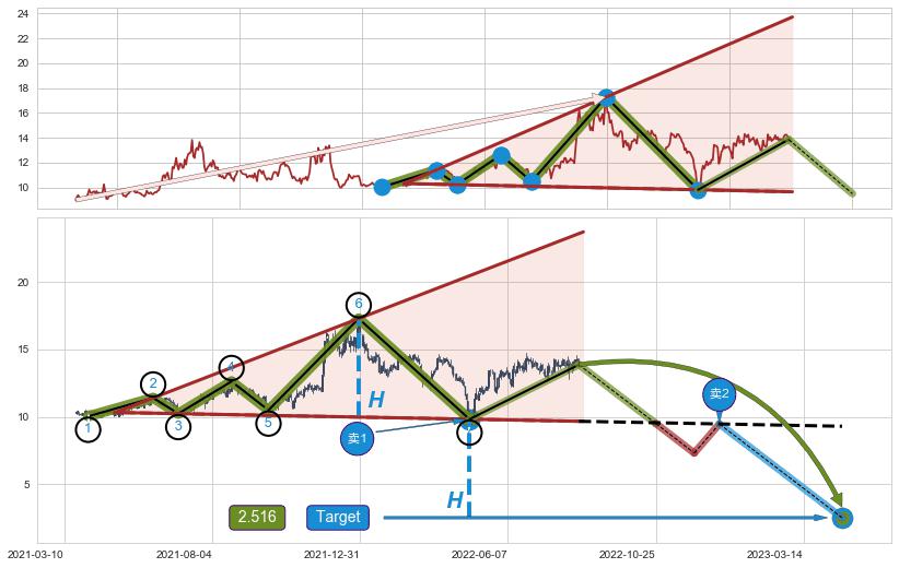 ➣ 【仅预测突破】最后价格:13.86与预测突破价格:9.82→【空间临近】后续最小【反转】第一目标价格→(2023-04-19: 2.516 )