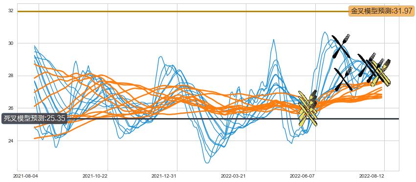 ➣ 35小时均线于(2022-08-11: 28.24)形成【金叉】基于【金叉历史模型】预测金叉后最高波峰价格: 32.41, 金叉后最高价格28.25,尚未达到预测最高波峰价格, 预期继续上涨