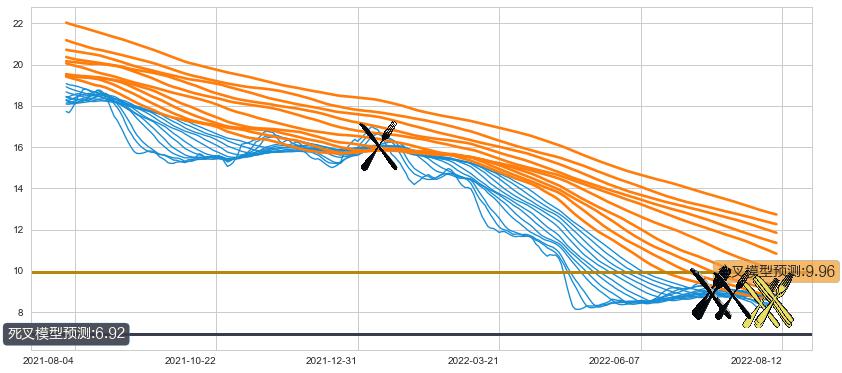 ➢ 60小时均线于(2022-01-12: 15.99)形成【死叉】基于【死叉历史模型】预测死叉后最低波谷价格: 13.66, 死叉后最低价格7.83,已经下跌超出预测最低波谷价格, 预期反弹
