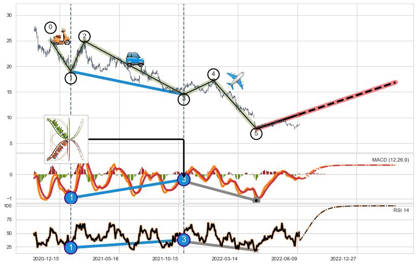 ➣ 波浪理论:猜想止跌 → 上涨 →【拐点】浪5已完成 → 大趋势均值回复