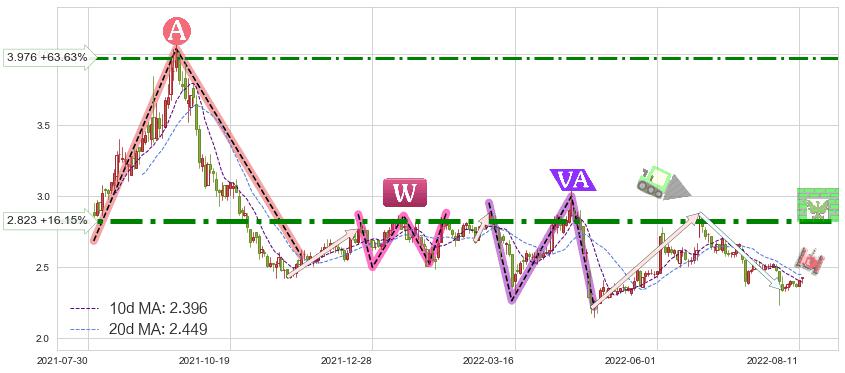 ♘ 阻力价格位2.823,可信任强度91.03%,距离最后交易2022-08-12形成的收盘价格2.430相差 +16.15%