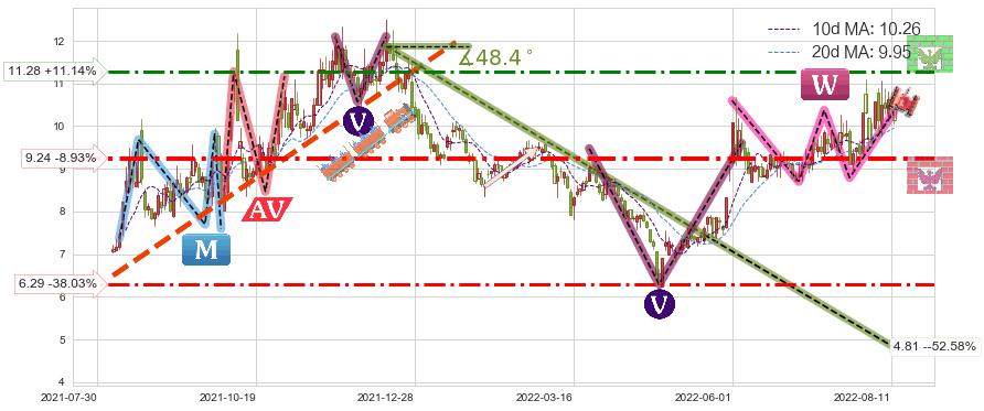 ➣ AI预测: 假定反转如期而至,第❷价格目标位置(2022-08-25, 9.49)