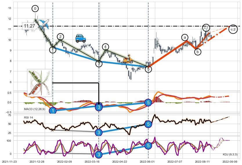 ➣ c.1: 当前c浪回调位置(2022-08-10, 10.62),仍然有回调空间