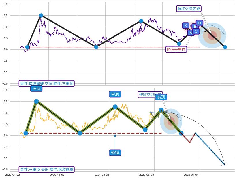 ➢ 谐波蝴蝶属【短级别信号事件】三重顶属【长级别信号事件】长短周期组合信号事件, 短长事件长度比8.10%