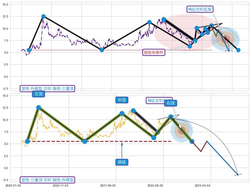➢ 升楔型属【短级别信号事件】三重顶属【长级别信号事件】长短周期组合信号事件, 短长事件长度比26.09%
