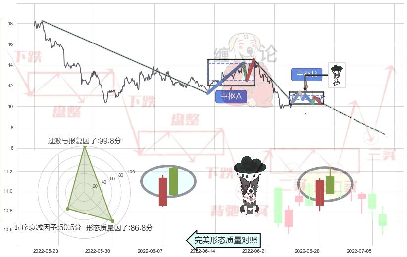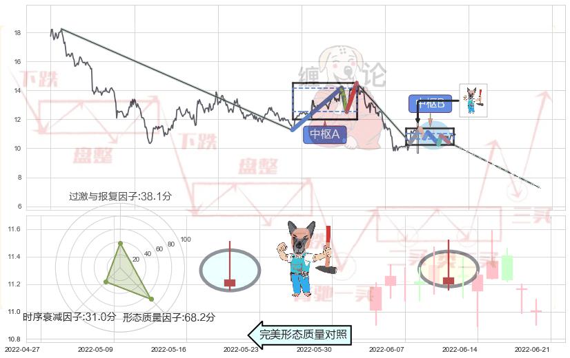 ➢ 看跌(高位倒锤头)流星线 🔜 缠论中枢点破位中枢B支撑下拉 综合量化分数:44.73 【偏空】
