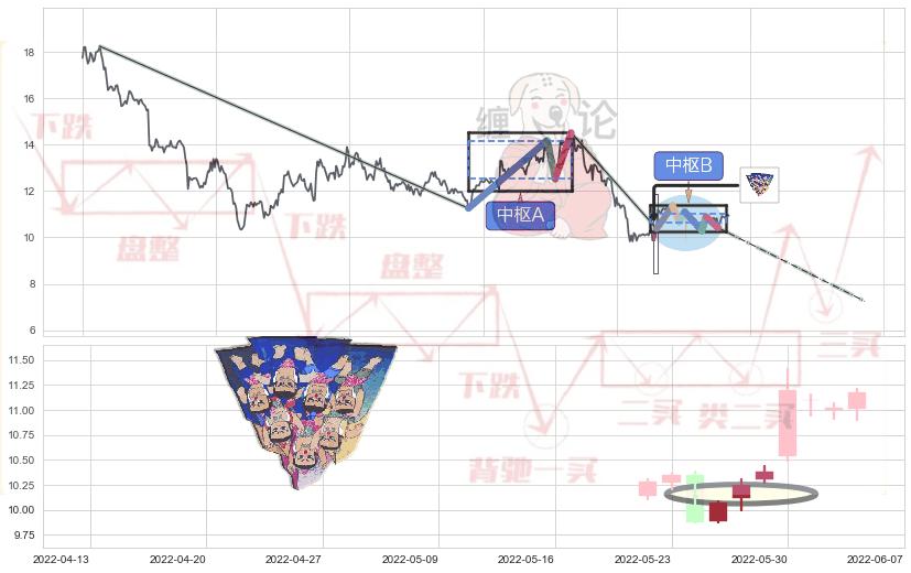 ➣ 缠论中枢点:猜想破位中枢B后持续下拉 → 下跌 → 破位中枢B支撑 → 持续趋势跟踪