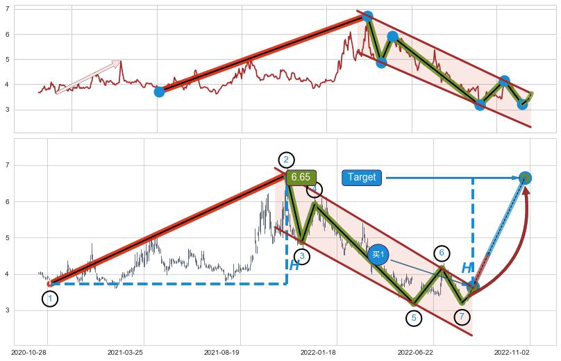 ➣ 最小中继整理涨幅→𝐇: 3.010 (𝐇旗杆的长度:旗杆起点→顶点)