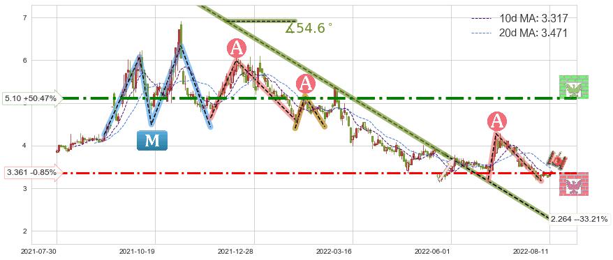 ♘ 支撑价格位3.361,可信任强度69.45%,距离最后交易2022-08-12形成的收盘价格3.390相差 -0.85%