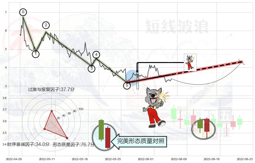 ➢ 🕰 价格走势在2022-06-23至2022-06-24期间形成双针探底,残存影响值:3.57