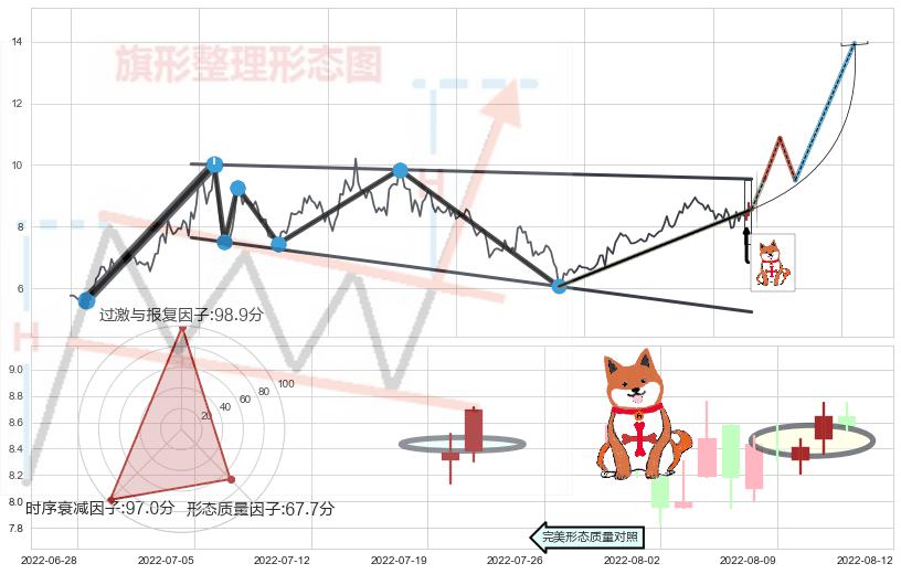 ➣ 【未确认突破,预测即将形成突破】降⚑旗形起点:2021-07-20, 预测突破点:2022-08-19,形态共265交易日