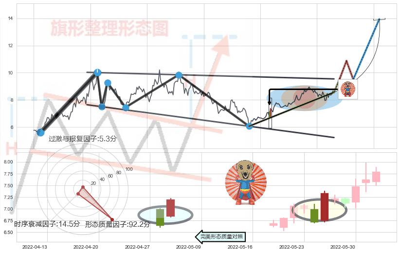 ➢ 🕰 价格走势在2022-05-30至2022-06-13期间形成两红夹一黑,残存影响值:4.25