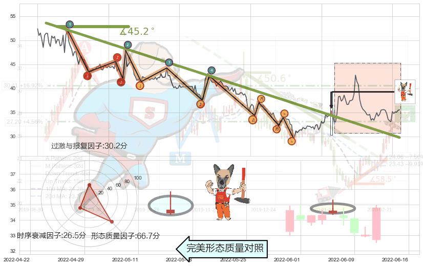 ➢ 2021-08-03-2022-05-25下跌趋势存在反转上涨[机会],其原下跌趋势的阻力位(29.80)已被突破[强支撑信号],原下跌趋势角度: 45.2˚