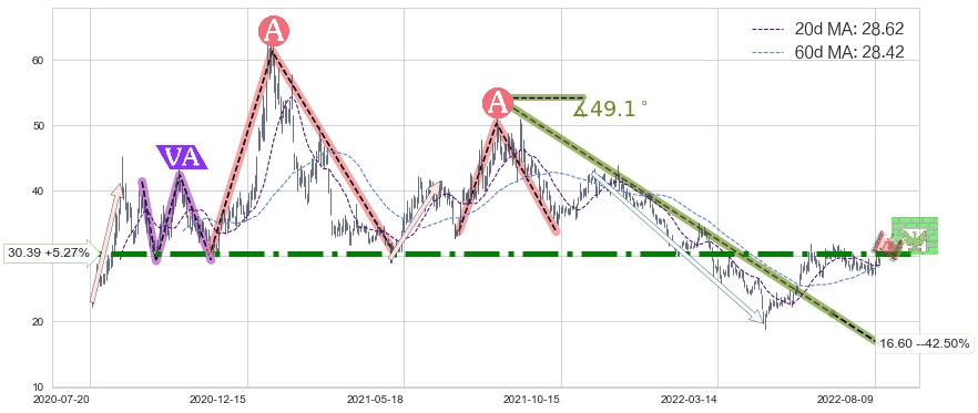 ♘ 阻力价格位30.39,可信任强度85.54%,距离最后交易2022-08-12形成的收盘价格28.87相差 +5.27%