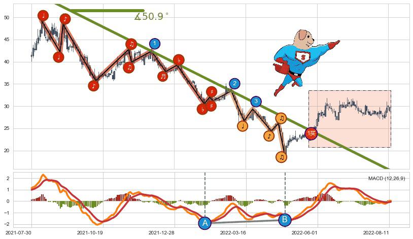 ➢ AI预测: 假定反转启动后, 第❷目标位置(2022-10-18, 28.68)