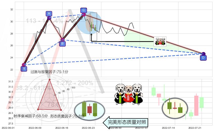 ➢ 🕰 价格走势在2022-07-13至2022-07-15期间形成两黑夹一红,残存影响值:-3.80