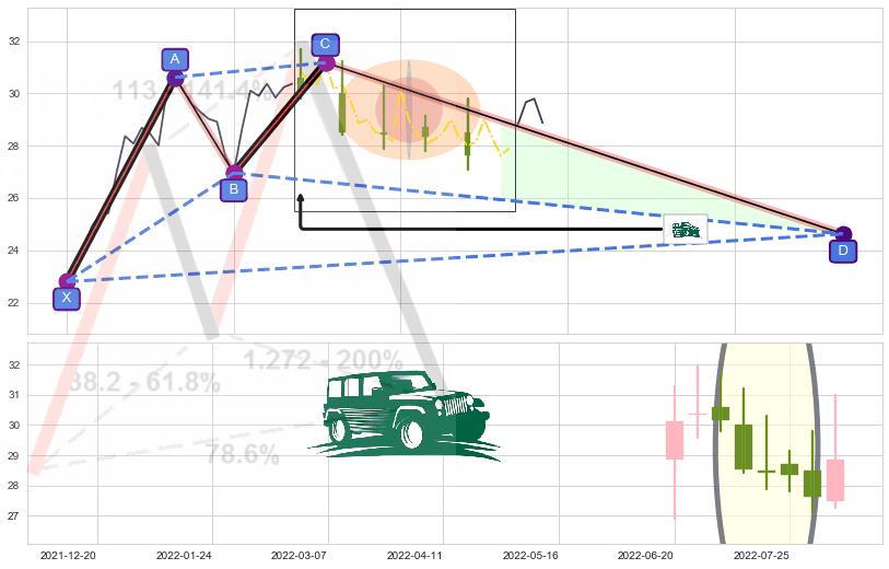➣ D点拟合预测价格24.63,距离最后交易收盘价格28.87相差 -14.70%