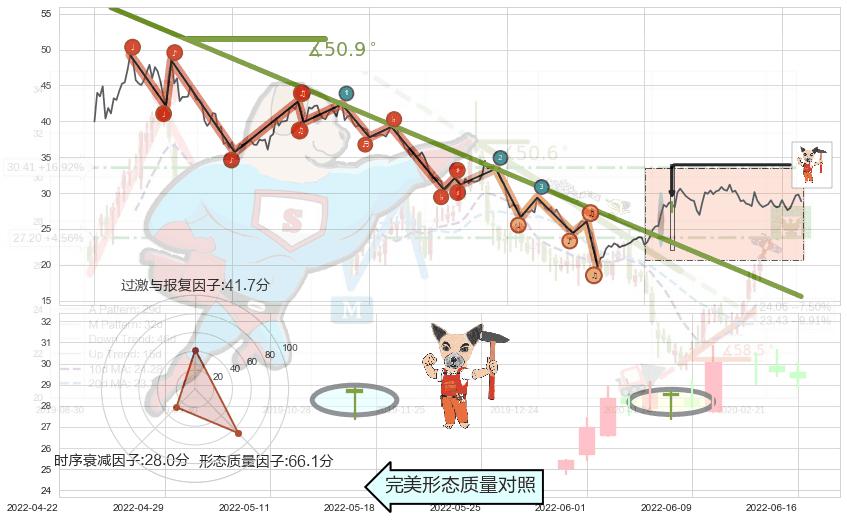 ➣ 2021-07-30-2022-05-26下跌趋势存在反转上涨[机会],其原下跌趋势的阻力位(15.60)已被突破[强支撑信号],原下跌趋势角度: 50.9˚