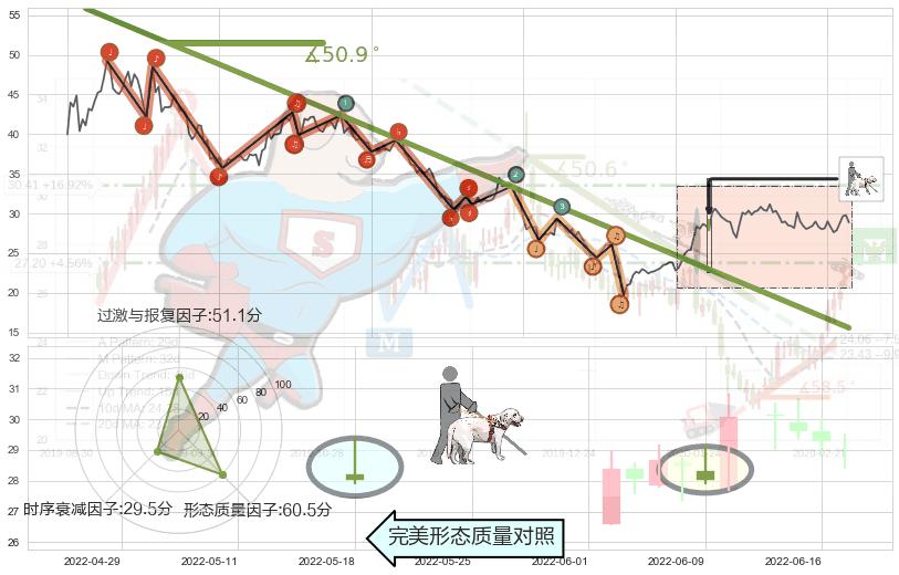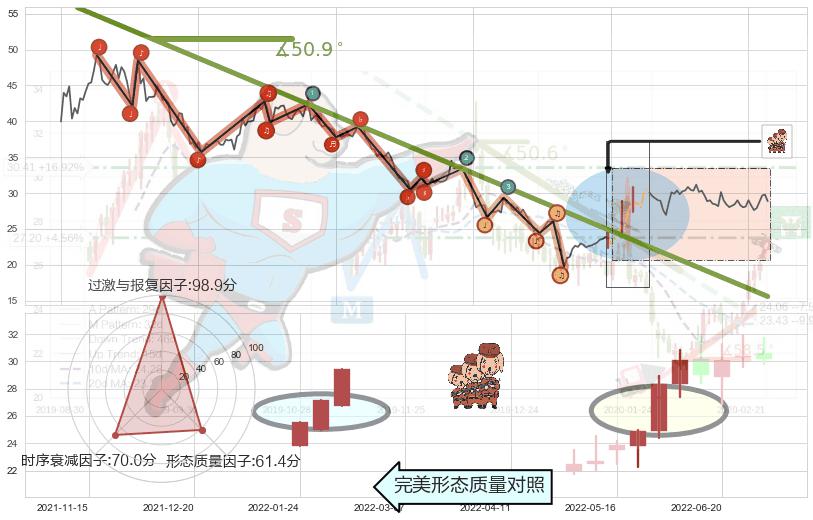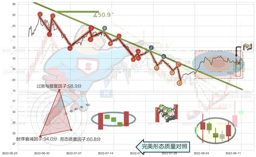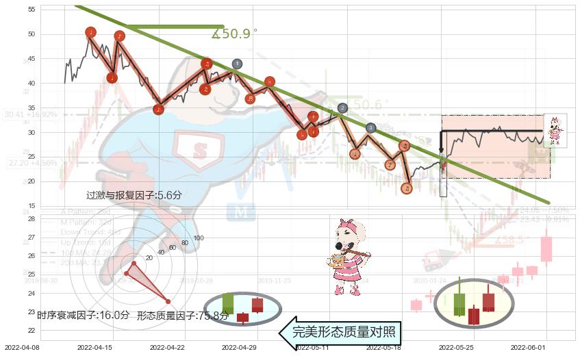 从2021-07-30至2022-05-26,共包含197个交易日,阶段股价下跌-45.98%,阶段股价变动位移路程比: 1 : 8,下跌趋势角度: 50.9