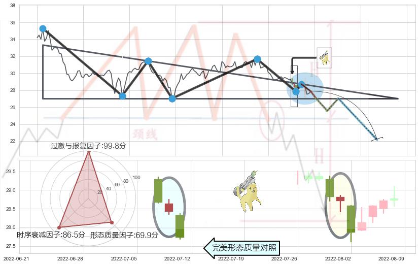 ➣ 【未确认突破,预测即将形成突破】下降三角形整理起点:2022-01-06, 预测突破点:2022-08-17,形态共149交易日