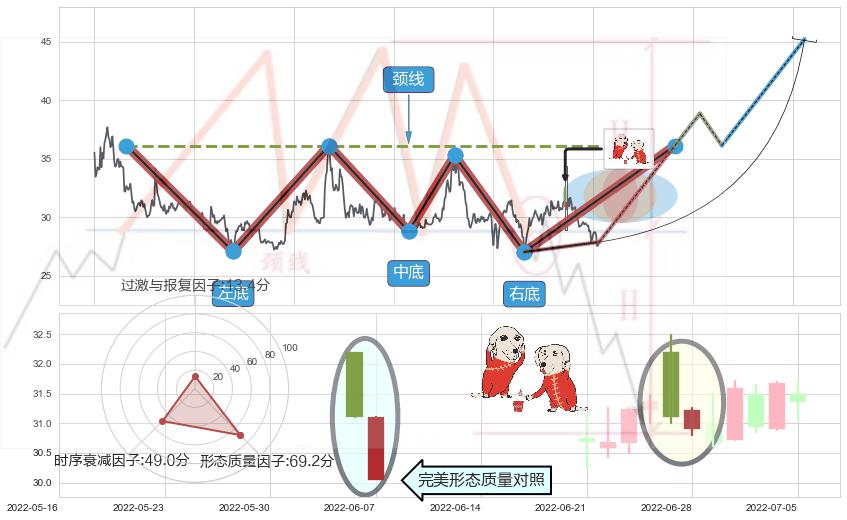 ➢ 🕰 价格走势在2022-06-30至2022-07-04期间形成两红夹一黑,残存影响值:2.21