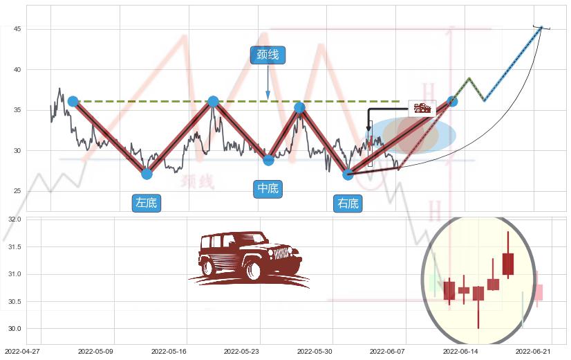 ➣ 三重底:猜想突破点临近,临近关键阻力位,预期拉升突破上涨