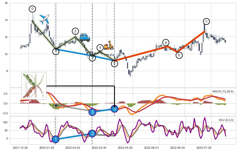 ➢ 波浪理论:猜想击穿突破c点后继续上涨 → 上涨 → 机会信号 → 小趋势跟踪