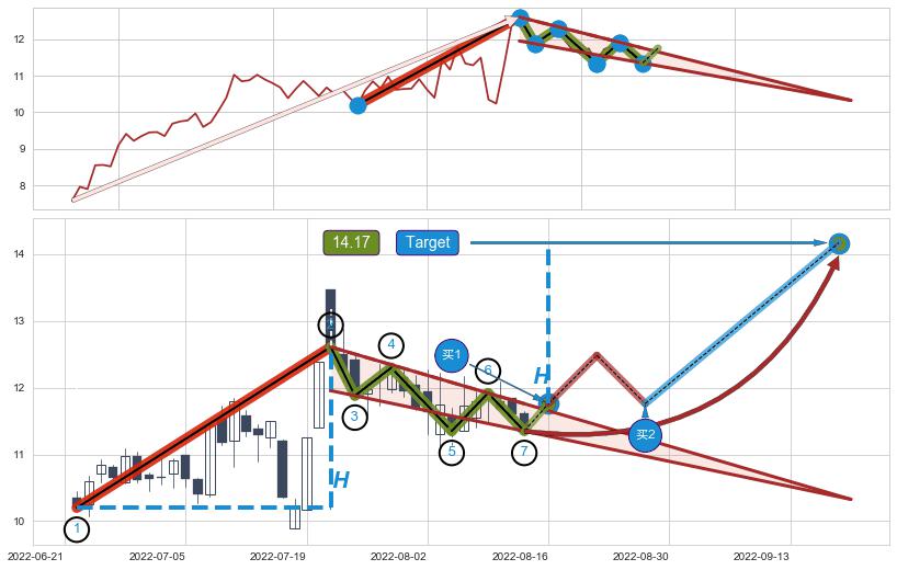 ➢ AI预测: 假定反转继续,第❸价格目标位置(2022-09-28, 13.80)