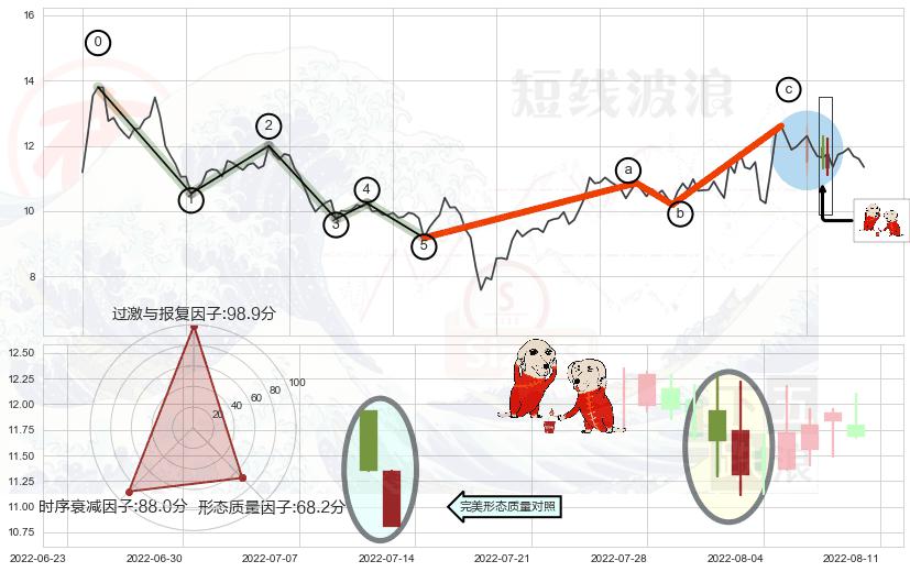 ♘ 阻力价格位13.43,可信任强度71.99%,距离最后交易2022-08-12形成的收盘价格11.35相差 +18.33%