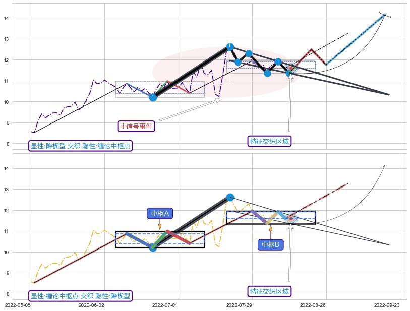 ➢ 降楔型属【中级别信号事件】缠论中枢点属【长级别信号事件】中长周期组合信号事件,中长事件长度比54.29%