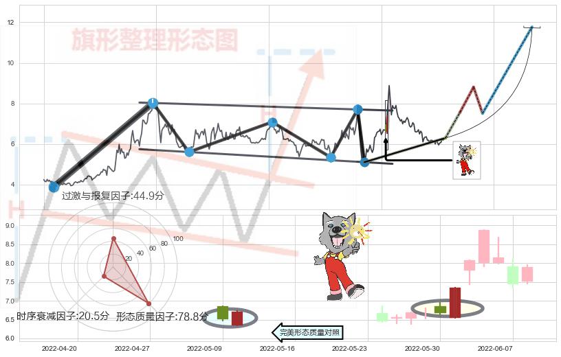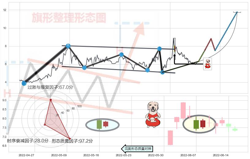 ➣ 【未确认突破,预测即将形成突破】降⚑旗形起点:2021-03-09, 预测突破点:2022-06-08,形态共302交易日