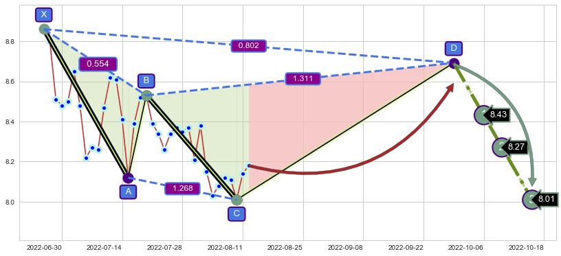 ➣ 未完成【赛福】形态起点X: 2022-06-27, 已到达C点: 2022-08-10, 预测最终D点: 2022-09-29, 共69交易日