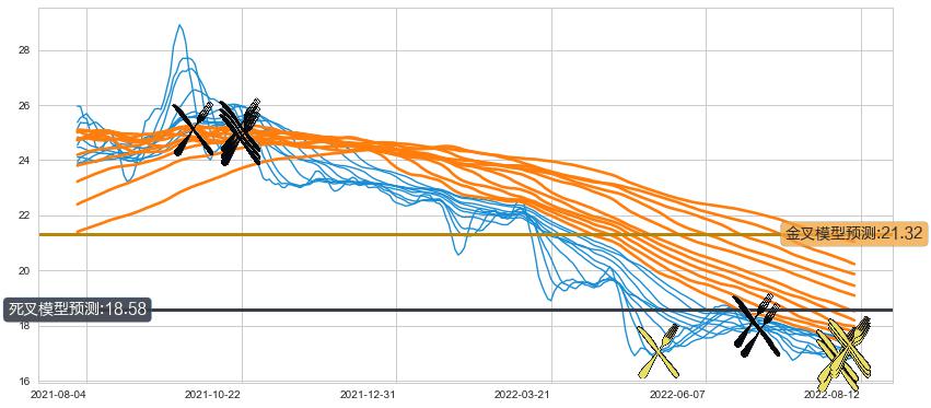 ➣ 90小时均线于(2021-10-21: 24.72)形成【死叉】基于【死叉历史模型】预测死叉后最低波谷价格: 22.29, 死叉后最低价格16.09,已经下跌超出预测最低波谷价格, 预期反弹