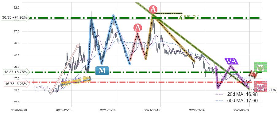 ➣ 【已确认突破】最后价格:17.35与最小【反转】第一目标价格→(2022-09-26: 9.86 )相较: 下跌空间【较大】