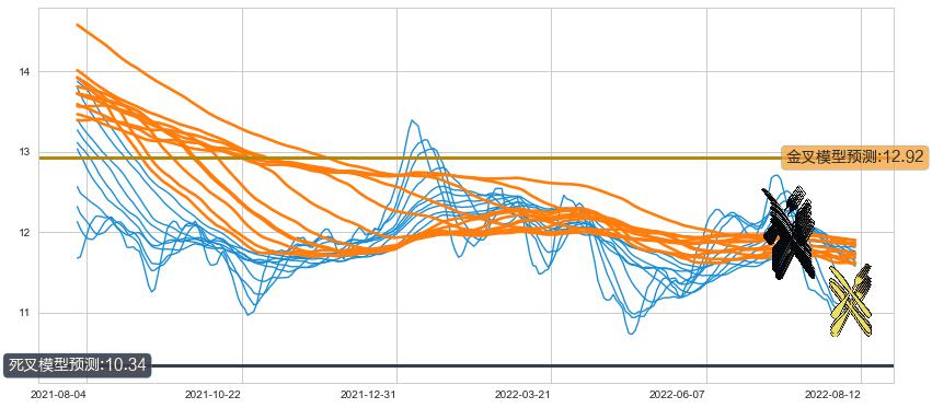 ➣ 34小时均线于(2022-07-12: 12.16)形成【死叉】基于【死叉历史模型】预测死叉后最低波谷价格: 11.29, 死叉后最低价格10.68,已经下跌超出预测最低波谷价格, 预期反弹