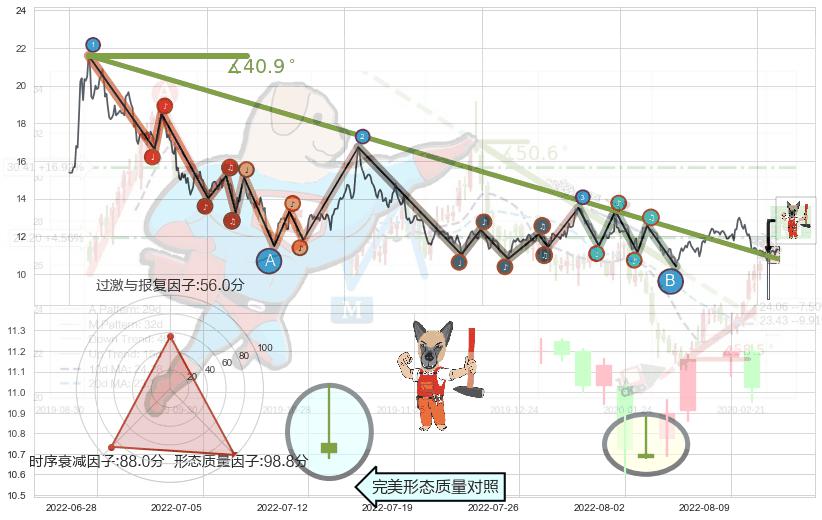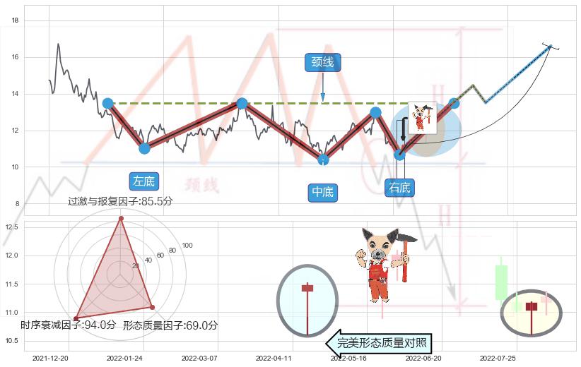 ♘ 支撑价格位10.78,可信任强度95.51%,距离最后交易2022-08-12形成的收盘价格11.28相差 -4.42%