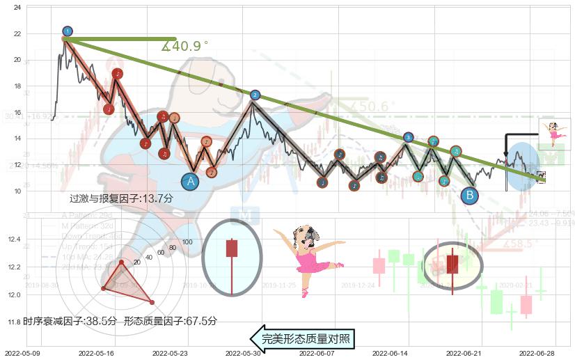 从2022-01-06至2022-05-26,共包含91个交易日,阶段股价下跌-12.12%,阶段股价变动位移路程比: 1 : 12,下跌趋势角度: 53.4