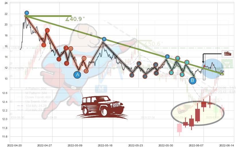 ➢ 【买0】下跌趋势线在→(2022-06-01: 11.90 )被突破,反转趋势形成