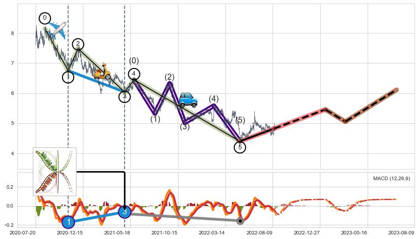➣ 波浪理论:猜想止跌 → 上涨 →【拐点】浪5已完成 → 大趋势均值回复