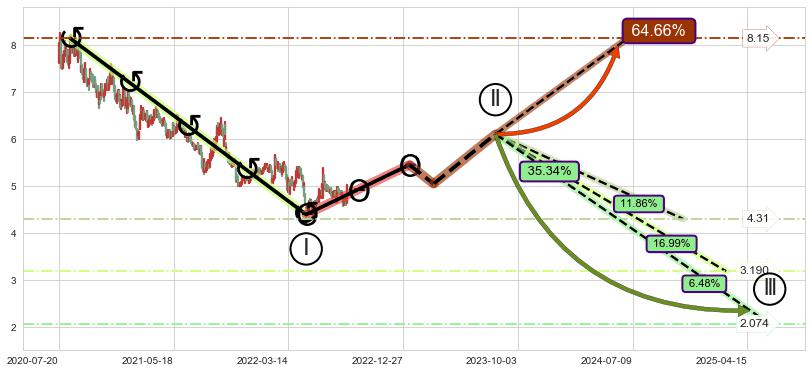 ➣ AI预测: 假定反转启动后, 第❸目标位置(2023-01-18, 4.40)