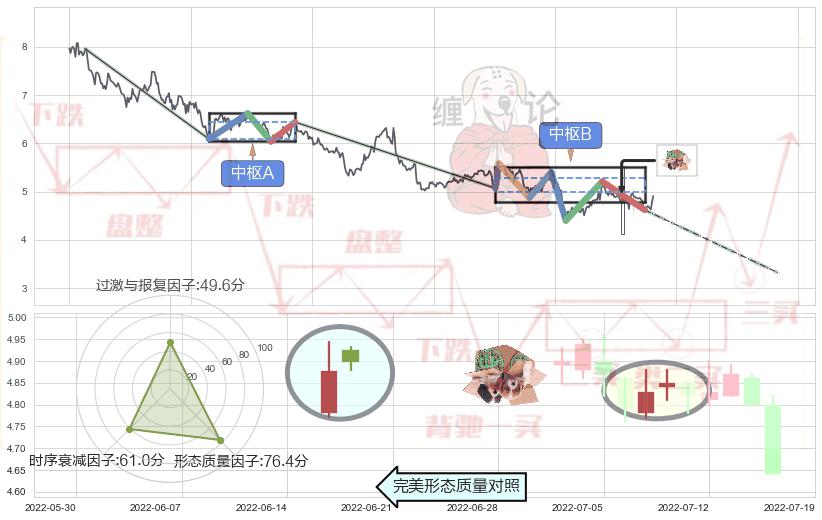 ➢ 看跌(高位倒锤头)流星线 🔜 缠论中枢点破位中枢B支撑下拉 综合量化分数:43.50 【偏空】