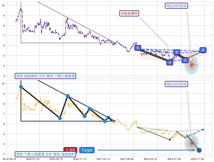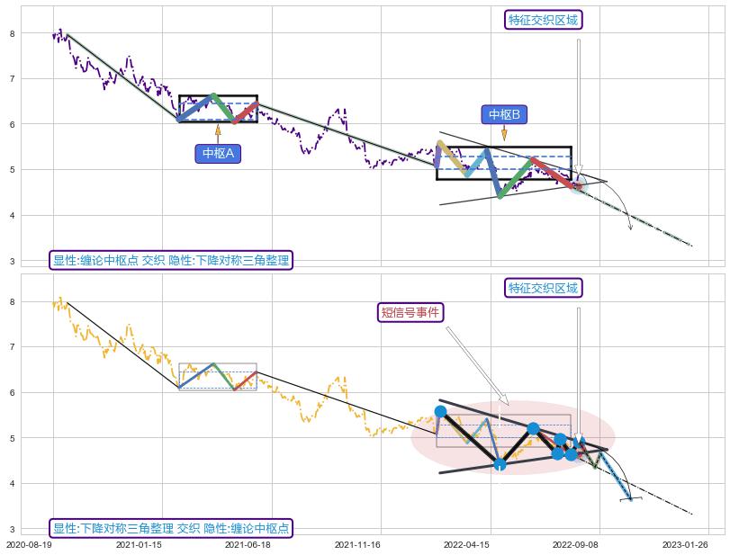 ➢ 下降对称三角整理属【短级别信号事件】缠论中枢点属【长级别信号事件】长短周期组合信号事件, 短长事件长度比27.29%