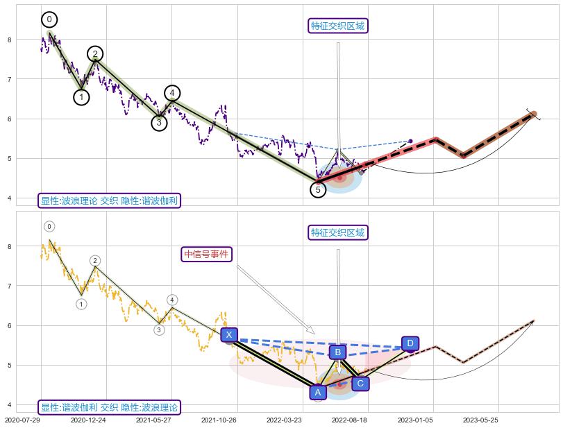 ➣ D点拟合预测价格5.43,距离最后交易收盘价格4.91相差 +10.58%