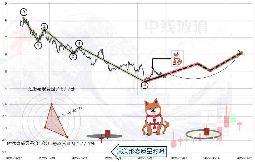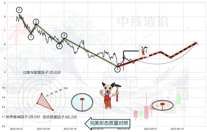➢ 曙光初现形态 🔜 波浪理论下跌浪:浪5反弹拐点 综合量化分数:54.20 【偏多】