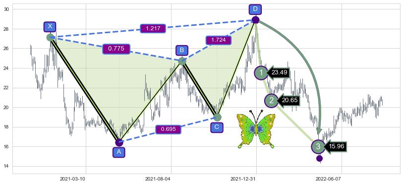 ➣ 已完成【蝴蝶】形态起点X: 2021-01-04, 终点D: 2021-12-30, 共242交易日
